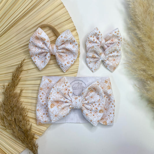 Neutral Floral Fall Hair Bow